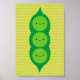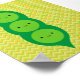 Three happy peas in a pod with a colorful zig zag polka dot background.