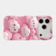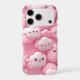This phone case features a cute, playful, and charming 3D design of various pink clouds and marshmallow-like characters. The clouds have adorable, simplified faces showing different expressions, ranging from happy to sleepy, set against a vibrant pink background. It's a sweet, dreamy, and highly textured design perfect for those who love kawaii (cute) aesthetics.