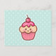 Kawaii Pink Cupcake and Cute Mint Blue Polka Dots Postcard
