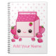 Type your name, notebook title or anything you want on the "Personalise it" box to change the text. This design features a cute milk carton with kawaii strawberries on pink polka dots background. Best gift for a lovely girl who loves pink, kawaii fruit & food.