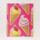 Waffle cones with strawberry ice cream scoops and frozen yogurt pattern