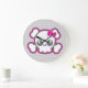 Kawaii Pink Ribbon Skull Wall Clock