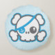 Cute and fun Kawaii Pirate Skull Round Pillow. Great for Halloween or everyday.