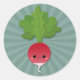 Kawaii Radish on Teal Starburst Classic Round Sticker