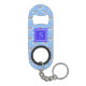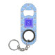 Drink in style with this kawaii rainbow clouds patterned bottle opener keychain with your personalised monogram initial or name. This cute kawaii rainbow clouds monnogram bottle opener features a hand drawn repeating pattern of fun kawaii rainbows, rainbow coloured rain drops, and clouds with lots of fun texture and a great sky blue colour that is calming but also playful. Bring the outside sky into your everyday life with this personalised monogram cute kawaii rainbow bottle opener. This kawaii rainbow and clouds pattern is an original pattern made by OhMyStarling! This rainbow monogram bottle opener will keep you looking cute with it's bright blue and rainbow hues and fun textured patterns. Add your own name or monogram on this personalised bottle opener keychain by clicking "personalise this template".