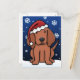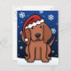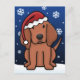 Send Redbone Coonhound Christmas Postcards to all your animal-loving friends this year! A cute kawaii coonhound cartoon sits upon freshly fallen snow wearing a Santa cap, while snowflakes drift gently down all around him.