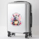 The stick looks amazing. Unfortunately, it would not stick on our suitcase as it was textured. When we found a non-textured (smooth) suitcase, the sticker stuck and looks great. The printing looked awesome.
