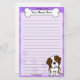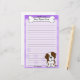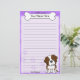 Fun Kawaii Saint Bernard stationery with a cartoon dog breed in the lower right corner. The top portion can be instantly personalised with your name inside the big doggie bone. Border and paper background are purple.