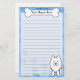 Cute Kawaii Samoyed stationery has an adorable cartoon dog in the lower right corner. Instantly customise this stationery by replacing "Your Name Here" inside the dog bone. The background is a pretty shade of blue. Perfect for Samoyed owners!