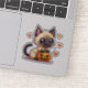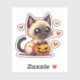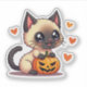 Playful Siamese kitten sticker in kawaii chibi Halloween style, great for cat lovers and festive crafts.