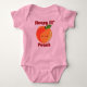 A cute infant creeper featuring a little baby peach taking a cute nap between the words “Sleeply lil’ Peach” in red font. Great for peach lovers, baby Georgians, and fans of sweet kawaii humour!