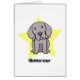 Adorable Weimaraner cartoon drawn in Japanese kawaii. The sporting dog breed sits with his head tilted in front of an enormous yellow star, with the breed name printed underneath. Unique and super cute Weimaraner gifts for pet lovers.