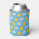 Repeat pattern of happy suns and sad rain clouds on a blue sky background for changeable springtime weather.