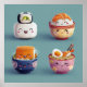 Four irresistibly cheerful Japanese food characters beam with big smiles and rosy cheeks against a clean teal background. A happy onigiri stacks proudly beside a salmon-topped rice bowl, a crispy tempura shrimp bowl steams gently, and a pink ramen bowl with egg, shrimp, and chopsticks completes the adorable squad. This playful kawaii illustration bursts with color, charm, and foodie fun, making it perfect for t-shirts, hoodies, stickers, phone cases, mugs, tote bags, aprons, and gifts for sushi lovers, ramen fans, and anyone who adores cute Japanese cuisine art.