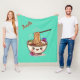Kawaii Teal Ramen Food Bowl with Japanese Flowers Fleece Blanket