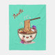😍Super cute image of a cartoon-styled bowl of ramen accented with Japanese flora on a beautiful medium-sized (50" x 60," or size of your choice) teal fleece blanket.