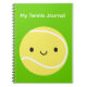 A kawaii happy yellow tennis ball on a green grass court background. Great for tennis players and sports fans. Edit the text for a name, event or title.