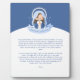Sweet kawaii Virgin Mary of the Immaculate Conception, praying with a flower in her hands and an editable banner. Includes customisable prayer text below. A tender Catholic devotional plaque, perfect for gifts and keepsakes.