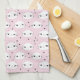 Kawaii White Cat Face Pattern on Pink Tea Towel
