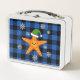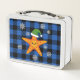 Kawaii Xmas Starfish on Blue Buffalo Pattern Metal Lunch Box