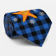 Kawaii Xmas Starfish on Blue Buffalo Pattern Tie