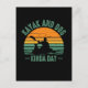 Awesome kayaking design T-shirts, posters, bags, planners, and more featuring a kayaker and his dog paddling on a river with text that reads Kayak and Dog Kinda Day, great for anyone who loves kayaking with their dog!