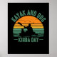 Awesome kayaking design T-shirts, posters, bags, planners, and more featuring a kayaker and his dog paddling on a river with text that reads Kayak and Dog Kinda Day, great for anyone who loves kayaking with their dog!