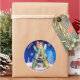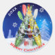 These festive kayak Christmas stickers feature a green, yellow and red kayak and paddles propped on end in a snowbank on a snowy winter evening, decorated and wrapped in garland to emulate a Christmas tree - customise with your holiday greeting -   All rights reserved. © katz d zynes