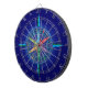 Kayak dart board features brightly-coloured kayaks arranged around a compass rose design.