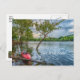 Get well soon postcard featuring a red kayak floats close to shore near a cute little crooked tree on a cloudy summer morning in Oak Grove Arkansas, United States on Table Rock Lake. Looking for more prints or products? Feel free to visit my store: http://www.zazzle.com/timelessmomentsphtgy