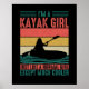 Awesome kayaking design T-shirts, posters, bags, planners, and more featuring a kayaker silhouette on a river with text that reads I'm a Kayak Girl Just Like a Normal Girl Except Much Cooler!
