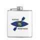 The flask itself is fine. It’s a cheap flask, obviously bought in bulk, however am prepared to overlook that. Given that it is a personalized item, I would have liked to have seen gift boxing instead of the generic packaging. Terrible printing, and/or quality. It’s a cheap, tacky vinyl. It is not cut straight and is also applied in a way that it is overhanging the bottom, causing the glue to catch on items and it will eventually roll and tear, damaging the wrap.