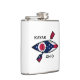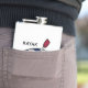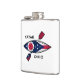 The flask itself is fine. It’s a cheap flask, obviously bought in bulk, however am prepared to overlook that. Given that it is a personalized item, I would have liked to have seen gift boxing instead of the generic packaging. Terrible printing, and/or quality. It’s a cheap, tacky vinyl. It is not cut straight and is also applied in a way that it is overhanging the bottom, causing the glue to catch on items and it will eventually roll and tear, damaging the wrap.