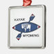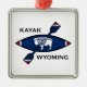 With tons of lake and rivers Wyoming has endless kayaking, paddling, and whitewater opportunities. This cool design shows a kayak with the Wyoming flag inside of it.