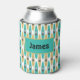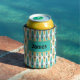 Fun personalised can cooler printed with a pattern of blue and taupe kayaks. Add your own name or text to customise.