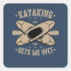 Funny kayak design on T-shirts and more great for anyone who loves kayaking, features a couple of kays, paddles, and text reads Kayaking Gets Me Wet.