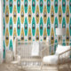 Kayakers and canoeists will love this peel and stick wallpaper patterned with colourful kayak canoes