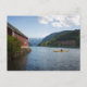 Postcard of a red boathouse and a man in a yellow kayak navigating the Osafjord, an arm of the big Hardangerfjord at Ulvik in Hordaland, Norway.