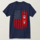 The design features a distressed vertical US flag with a kayak replacing one of the red stripes. The flag is presented in the traditional layout, with the blue field with white stars at the top left and the red and white stripes running vertically down the right side of the design. However, one of the red stripes has been replaced by an image of a kayak. The kayak is rendered in red, so it blends in with the other stripes while also standing out as a unique element. The flag itself is distressed, with the colours appearing faded and worn and the fabric appearing slightly tattered. The combination of the distressed flag and the unique kayak element creates a vintage, rugged look that is both patriotic and adventure-themed.