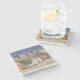 The coasters are gorgeous, a quality feel and heavy weight. They look like a precious archeological find. A rustic stone juxtaposed with a modern floral black and white print. I like the way the print goes slightly imperfect on the cut stone edges giving them a kind-of natural beauty.