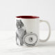 11 oz. two tone coffee mug with artwork by Jeannine DeWald featured for the right handed hot beverage drinker! The Keeshond is featured supporting the KCA trophy award, just like the person who supported it by purchasing the coffee mug!