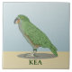 An illustration of a kea. This bird is the world's only mountain parrot. They are curious, New Zealand birds. This design has a simple vector kea on a blue background.
