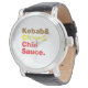 Funny Foodie Takeaway Junk Food Humour ~ Kebab and Chips and Chilli Sauce.