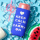 KEEP CALM AN CARRY ON Blue Seltzer Can Cooler
