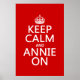 This reads Keep Calm and Annie On, in the style of the classic keep calm poster.  It makes a range of different and fun gifts for any Annie in your life, perfect for birthdays and christmas gifts with that personal touch.  It's also popular for bachelorette and hen parties.