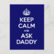 Postcard saying 'Keep Calm and Aks Daddy' in the style of the famous British 'Keep Calm and Carry On' WWII poster. You can choose your own background colour using the 'Customise it!' button and 'Edit' -> 'Background'.