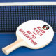 Red typography text Keep Calm and Be My Valentine ping pong paddle with Valentine penguin printed on white background. Text is printed on both sides.