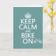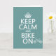 This reads Keep Calm and Bike On, in the style of the classic keep calm poster. There is a silhouette of a bike by the words. It's a great simple design, making a range of perfect gifts for anyone who loves to bike, whether racing, rally, or just for fun.