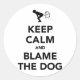 Keep Calm and Blame the Dog. Man's best friend, especially when you've just farted - it's always a great excuse to blame the dog! In the style of the famous Keep Calm and Carry On poster. Retro charm with a wicked twist!