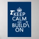 This reads Keep Calm and Build On, in the style of the classic keep calm poster. There are silhouettes of a hammer and power drill around the words. It's a fun eye catching design, perfect gifts for all builders and contractors, or anyone who likes a bit of DIY.